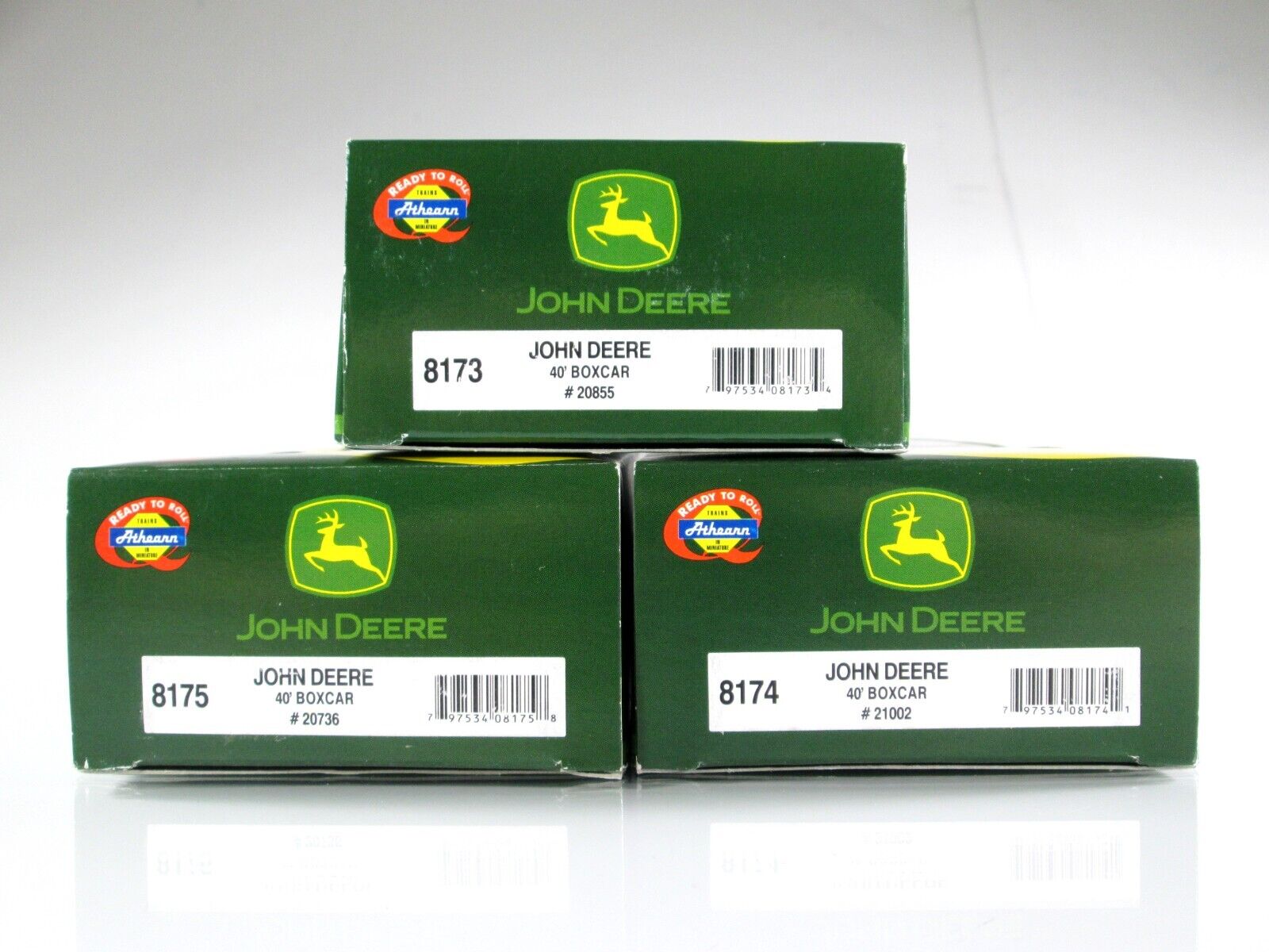 HO Scale JOHN DEERE 40' Single Door Box Car 3-Pack Set - Athearn *Green / Yellow