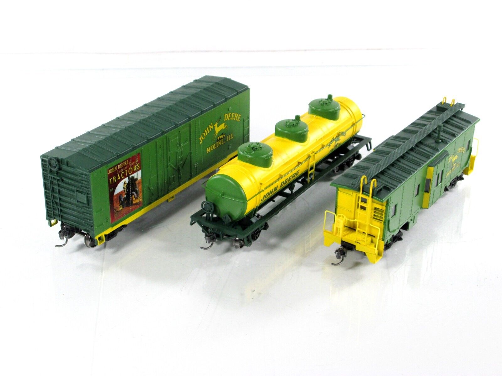 HO Scale ***JOHN DEERE*** 40' Box Car, 3-Dome Tank, Bay Window Caboose Set