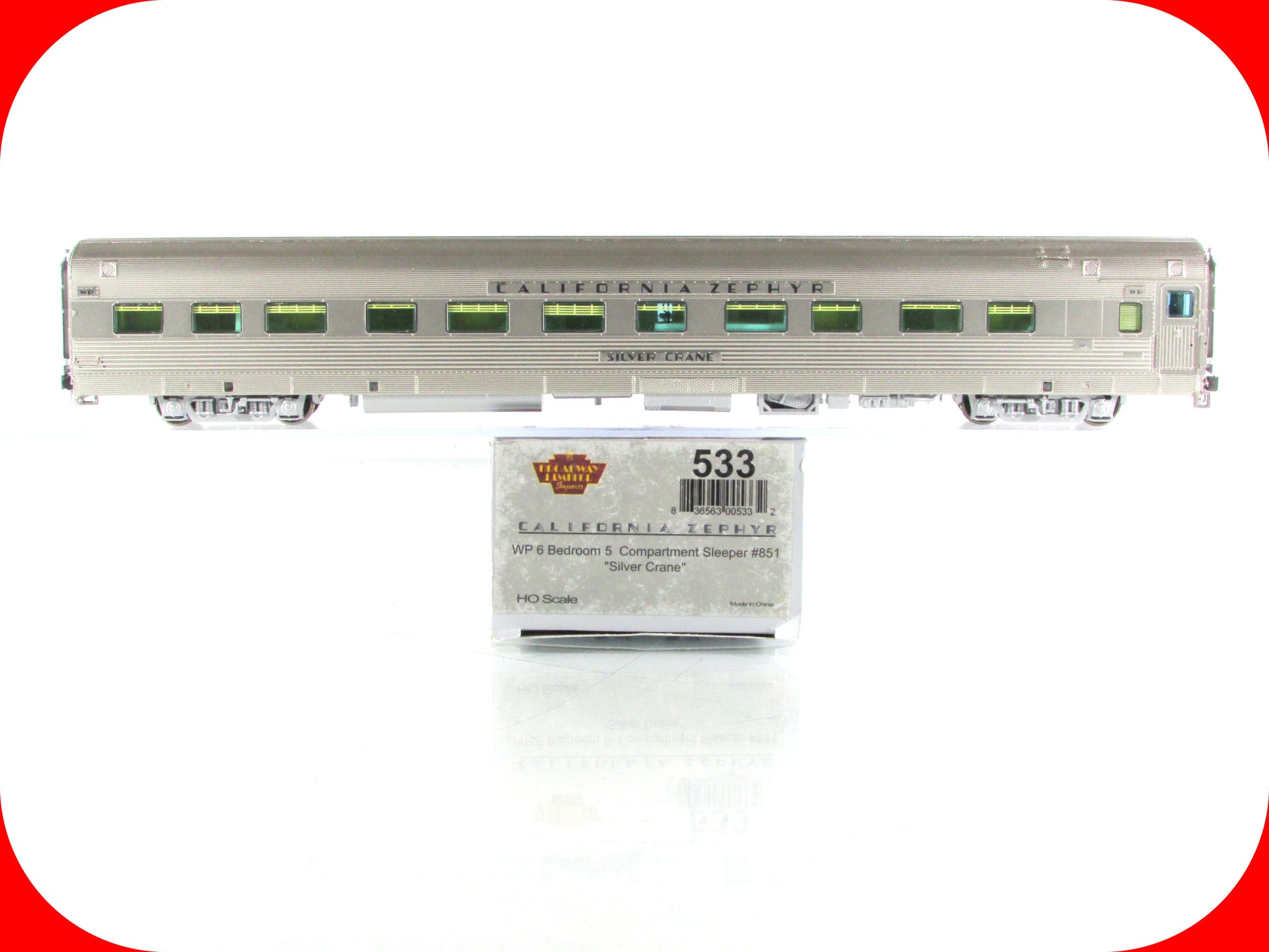 HO Scale ***WP CA ZEPHYR*** SILVER CRANE Sleeper #851 ---- Broadway 533, Lighted